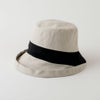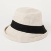 ななめ切り替え部分に同生地配色をした麻生地のエッジアップ帽子。