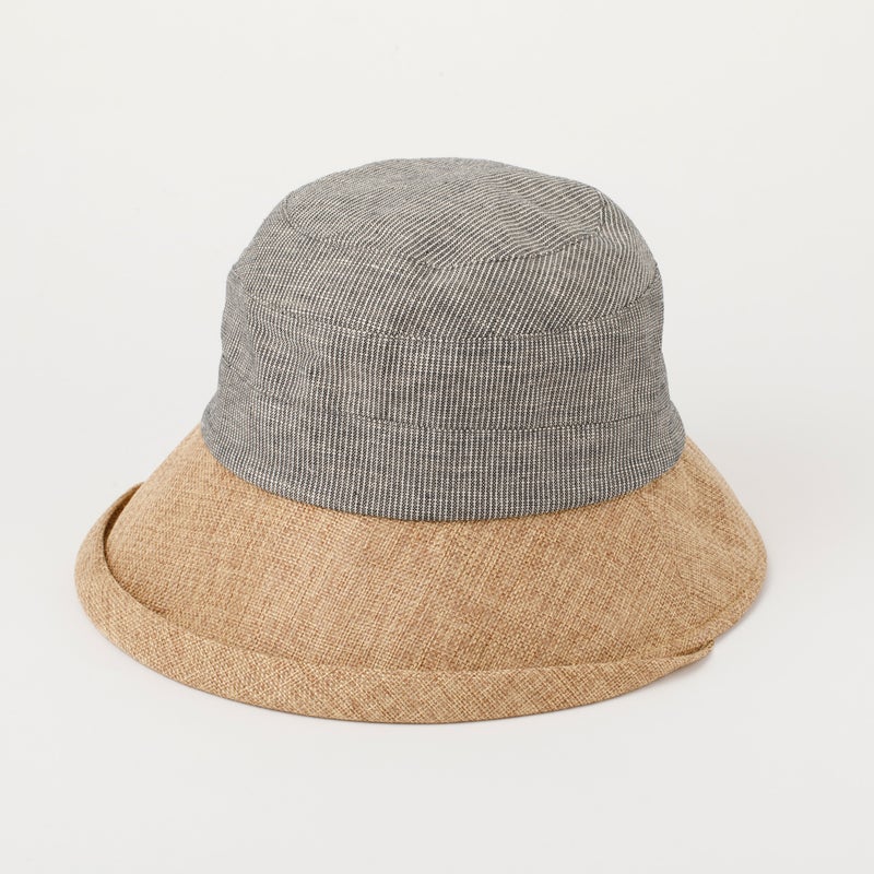 雑材感のあるジュート風生地と綿麻生地とのコンビ帽子!