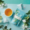 すっきりとした味わいの釜炒り緑茶に、天然のジャスミンの花で繰り返し香り付けしたジャスミンティー。