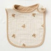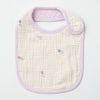 おくるみとスタイは、シワ感のある生地に、小ぶりな刺繍がポイント。どの柄も目を引く可愛さです♪
