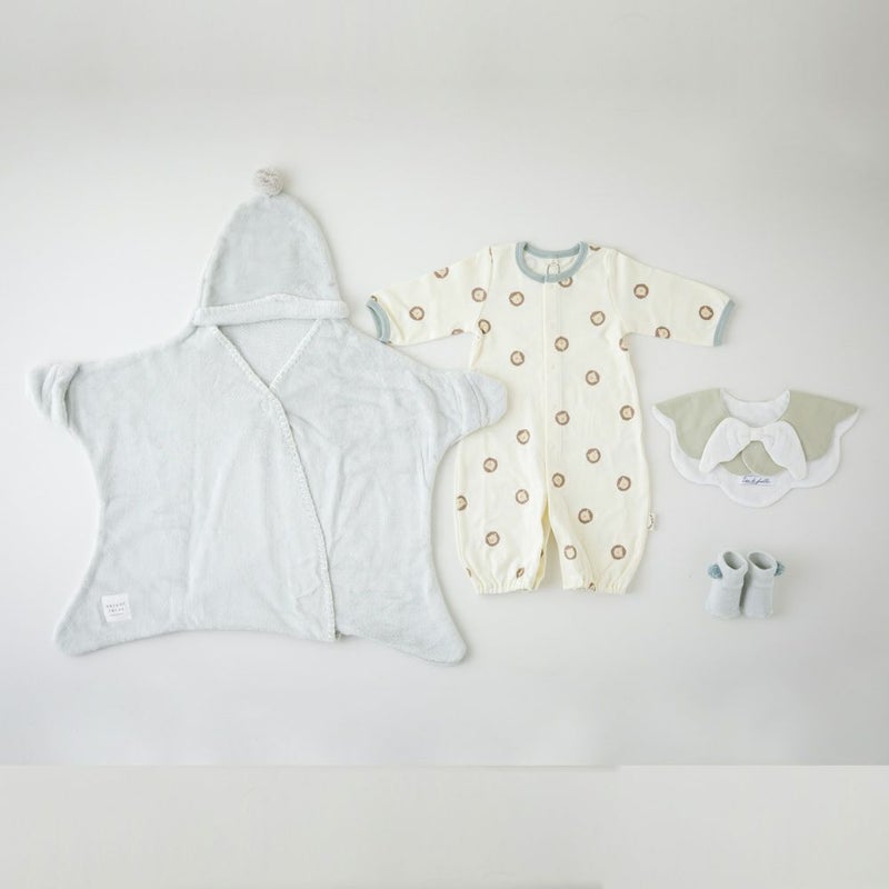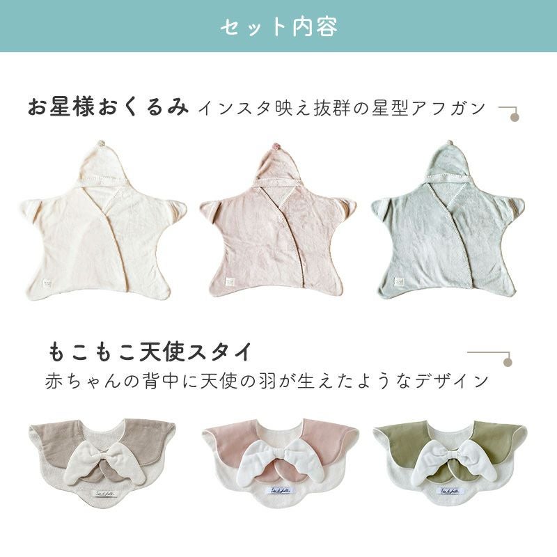 【出産祝い ギフトセット】mocmof(モクモフ)お星様おくるみともこもこ天使スタイのセット【ギフトボックス入り】/Amingオリジナルセット