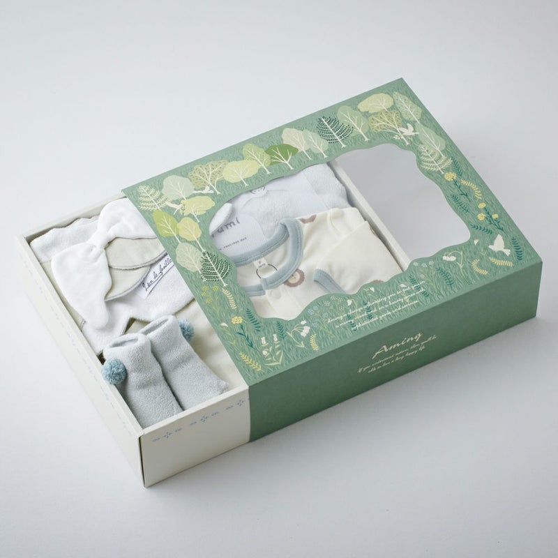 森をイメージしたAmingオリジナルデザインのボックスに詰め合わせると、きちっと感が出てより素敵な贈り物に。