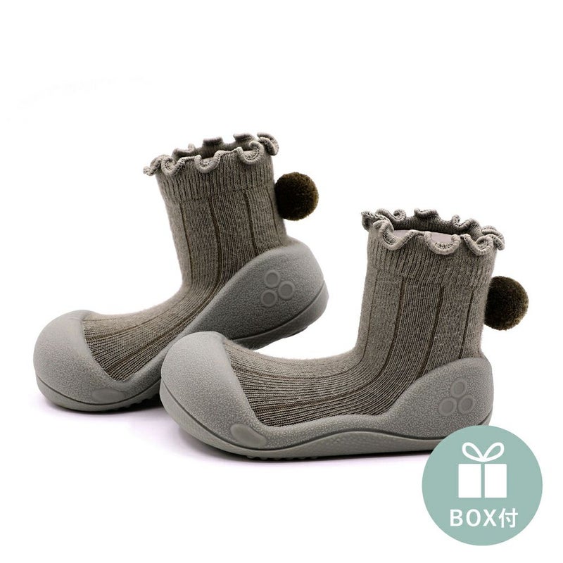 裸足のような感覚で歩けるファーストシューズ。 Attipas(アティパス)ベビーシューズ Pom-Pom Khaki (11.5/12.5cm)