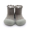 「アティパス」は、いよいよ歩き出そうとする時期の赤ちゃんのためにつくられたシューズブランド。ソックスとシューズをドッキングした独自のフォルムは、赤ちゃんの足を科学的に研究して作られました。 つま先の広い設計や片足約40gという軽量感など、高い機能性を持つベビーシューズです。