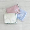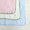 「おくるみタオル」は、大判の正方形(約80×80cm)で、赤ちゃんを寝かせたまま身体を拭くことができ使いやすいです。赤ちゃんをくるんだり、おふとんやオムツ替えマットなどマルチに活躍するアイテムです。