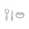 3種の異なる形が、赤ちゃんの舌や口周りの筋肉を満遍なく鍛えるのに計算されたデザインになっています。