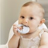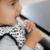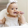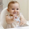 表面のポコポコとした突起は、乳歯が生え始める前の柔らかい歯茎を傷めることなく、乳歯が適正なタイミングで生えるように優しく刺激します。