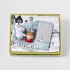 ふんわりとしたさわやかな使い心地のタオル、やさしい手ざわりのリストラトルに、ママとベビーでお揃いデザインのスタイとベルトカバーを組み合わせたギフトセット。