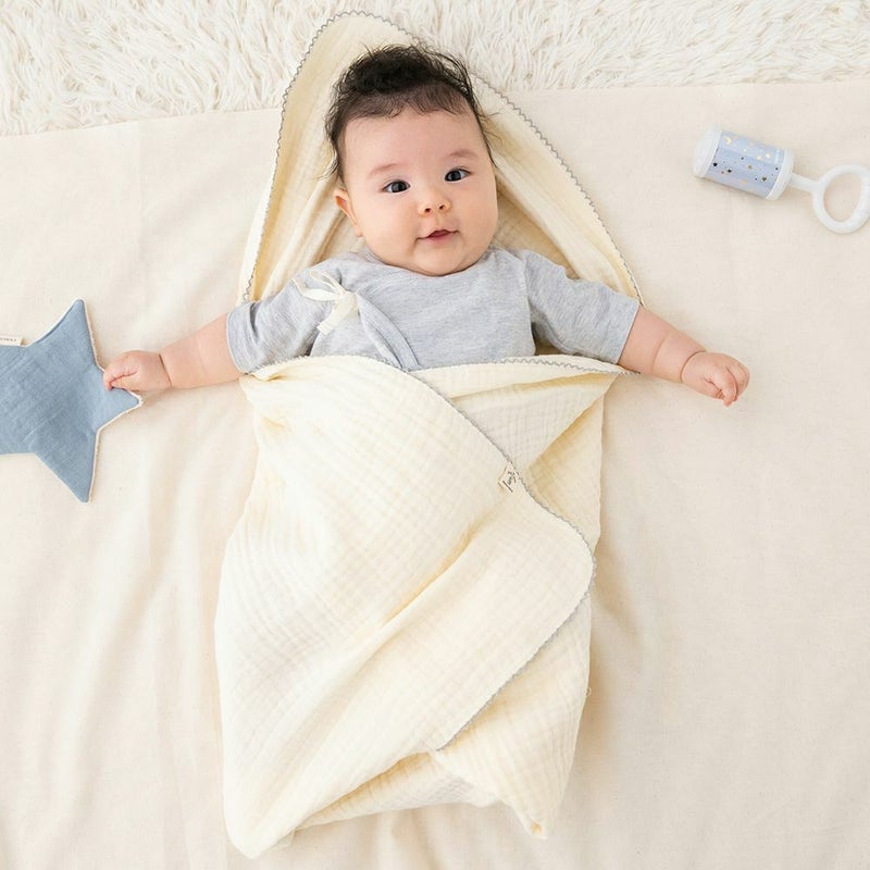 おくるみはスクエアタイプで使いやすく、赤ちゃんの肌にやさしい綿100%!マルチに活躍する必須アイテムです◎