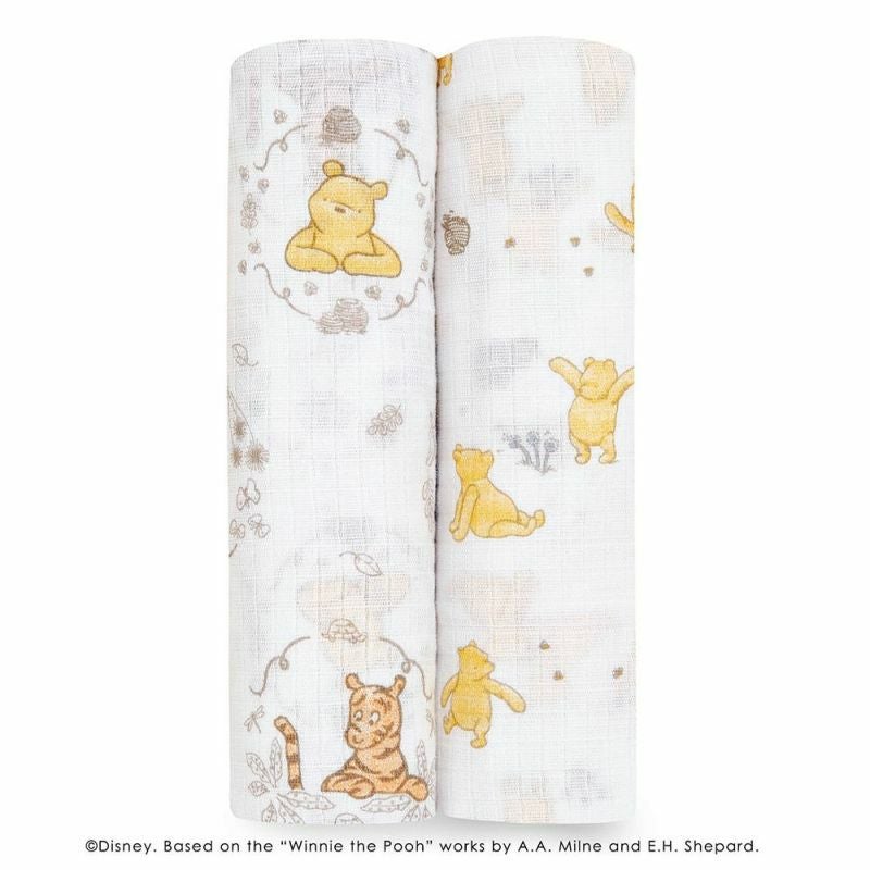 aden+anais essentials(エイデンアンドアネイ エッセンシャルズ)【日本正規品】モスリンコットン おくるみ 2枚 ディズニー ウィニーアンドフレンズ disney baby swaddle -winnie+friends- 2pk 【ボックス入り】