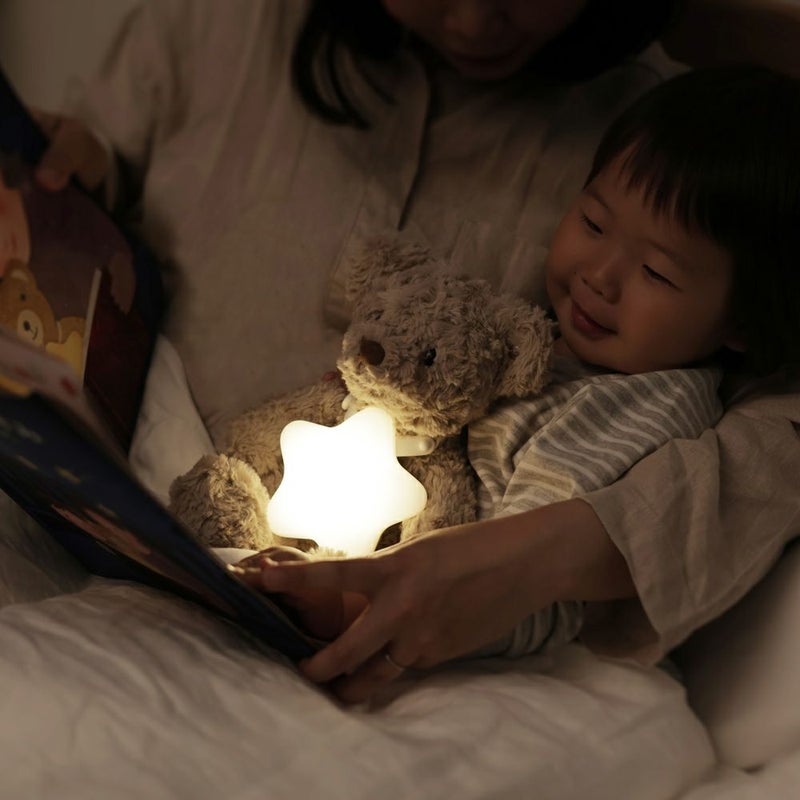 まぶしすぎないえほんライトは、やさしく照らすお星さまの形。