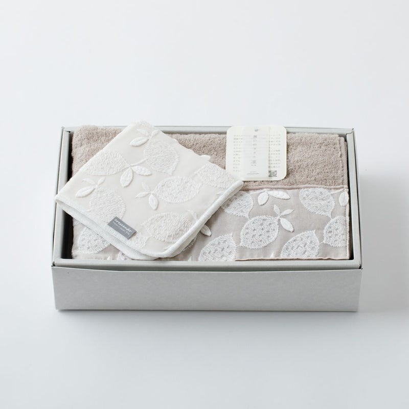 手書きのようなレースの刺繍が魅力的なタオルセット