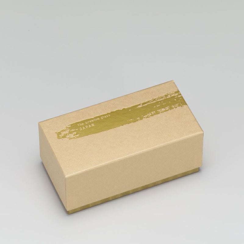 グラスのフォルムに沿って勢いのある筆運びで書かれた、金色の一文字がキラキラと煌めきモダンな趣を感じさせます。