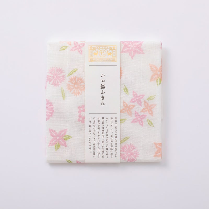 綿のかや織を5枚重ねで縫い合わせたふきんは、使うほどにやわらかくなり、吸水性に優れ、丈夫で長く使うことができます。