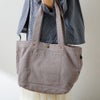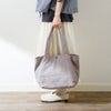 持ち手部分の補強のリベットや、ドーナッツボタンで閉じることができるこだわりを感じるミニトートバッグのLサイズです。