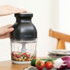 材料を入れてスイッチを押すだけで刻む、砕く、混ぜる、練る、潰す、おろし、鬼おろし、泡立ての1台8役がこれ1台で実現!