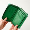 パスポートほどのサイズ感ながら収納力抜群で、小銭入れはガバッと大きく開くので中身が見やすいのも◎