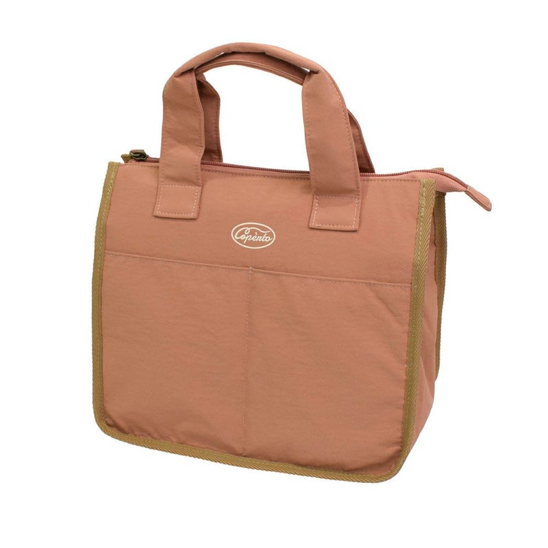 大きめサイズでシンプルなロゴのワンポイントプリントされたランチバッグ。
