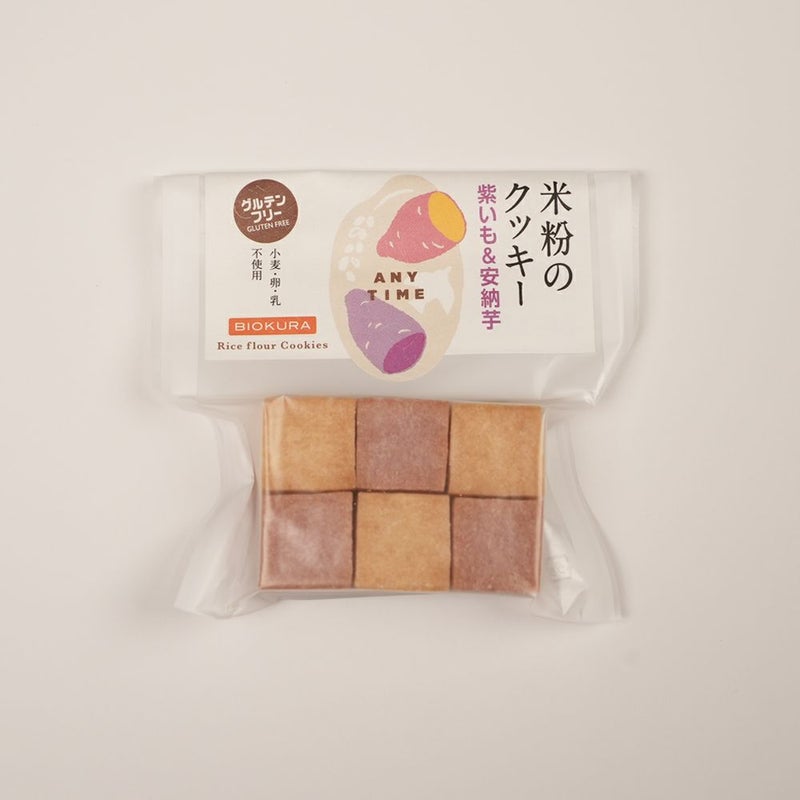 【クッキー 紫いも&安納芋】米粉(米(国産))、米油、アーモンドプードル、てんさい糖、安納芋パウダー、紫いもパウダー、食塩