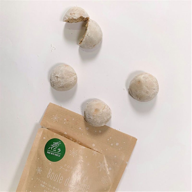 有機小麦粉と有機アーモンドプードルを使用し、低温でじっくり焼き上げたクッキー生地に有機粉糖を2度トッピングして作りました。