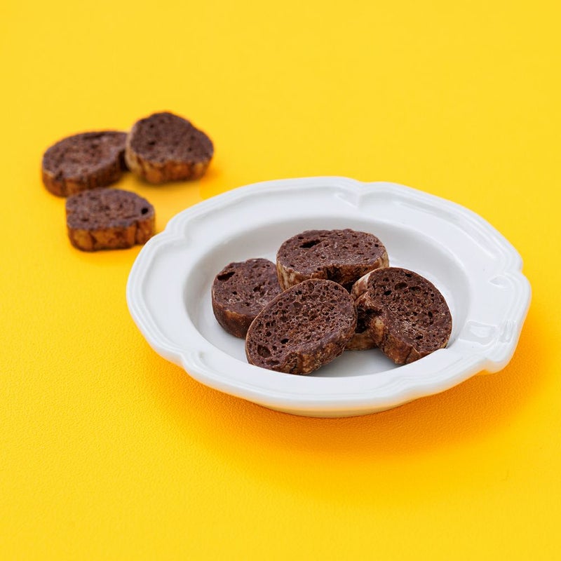 福井県産ブランド小麦粉「ふくこむぎ」&発酵バターを使用して、食べやすいプチサイズで焼き上げたチョコレートラスク。