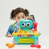 ボールを穴に落とすと音楽が鳴り、目がくるくると回ったり、ブロックの型はめをすると英語でカタチの名前を教えてくれるしかけも。