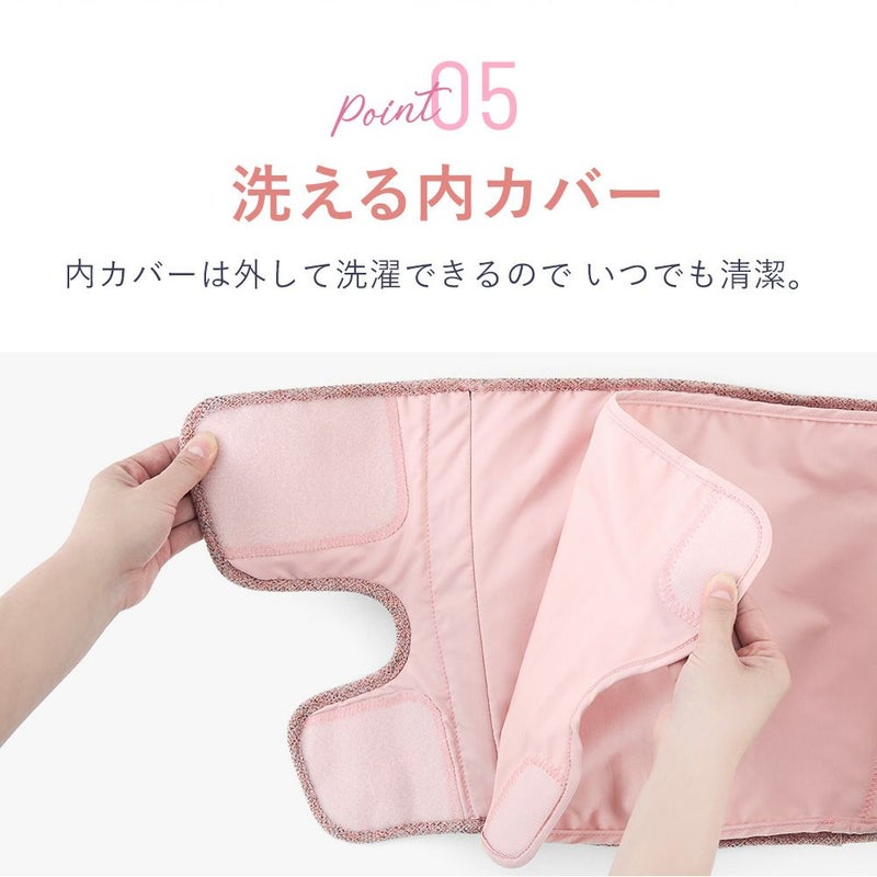 内カバーの破線(「ふくらはぎ」と記載のある線)をふくらはぎに合わせ、面ファスナーをスネ側で固定します。