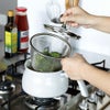 ぴったりサイズの便利なザルが付いている事で、「茹でる」「水洗い・水切り」「湯切り」「揚げる」の役割をこなしてくれます!
