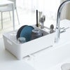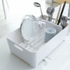 よく使う、グラス・カップ・茶碗・カトラリー・調理道具などを収納できるシンプルな水切りバスケット。バスケットの底にスリットが入っているので、お皿を立てて置くことができます。