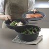 また2つの食材をザルとボウルに分けて、一度に電子レンジ調理も可能です。
