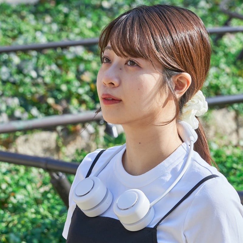 買い物時や雨の日、小さなお子様とのお出かけ時に便利なネックファンに、冷却プレートを搭載。