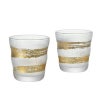 キラキラと煌めく金の一文字が入った、モダンな雰囲気のロックグラス。グラス表面を特殊技術(みぞれ仕上げ加工)で、涼しげな風合いに仕上げています。ペアセットなので、ご家族やご夫婦で一緒にお使いいただけます。専用パッケージ入りで、ギフトにもぴったり。