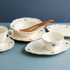 ぷっくりとしたブルーのツバメは、手押し判子と手描きで一つひとつ絵付けされ、濃淡の違いや位置ズレの手仕事による個体差がチャーミング。