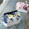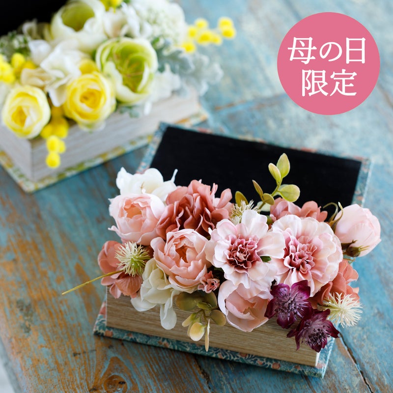 洋書のようなブック型ボックスに可憐な花をぎゅっと詰め込んで、可愛らしく仕上げました。