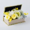 洋書のようなブック型ボックスに愛らしい花をあしらった、可愛らしいアレンジメント。