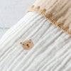 赤ちゃんの肌にやさしい綿100%。洗うたびに風合いが増す、ふわっとやわらかい4重ガーゼ仕上げ。空気がふくまれるのでふわふわとした生地感になります。