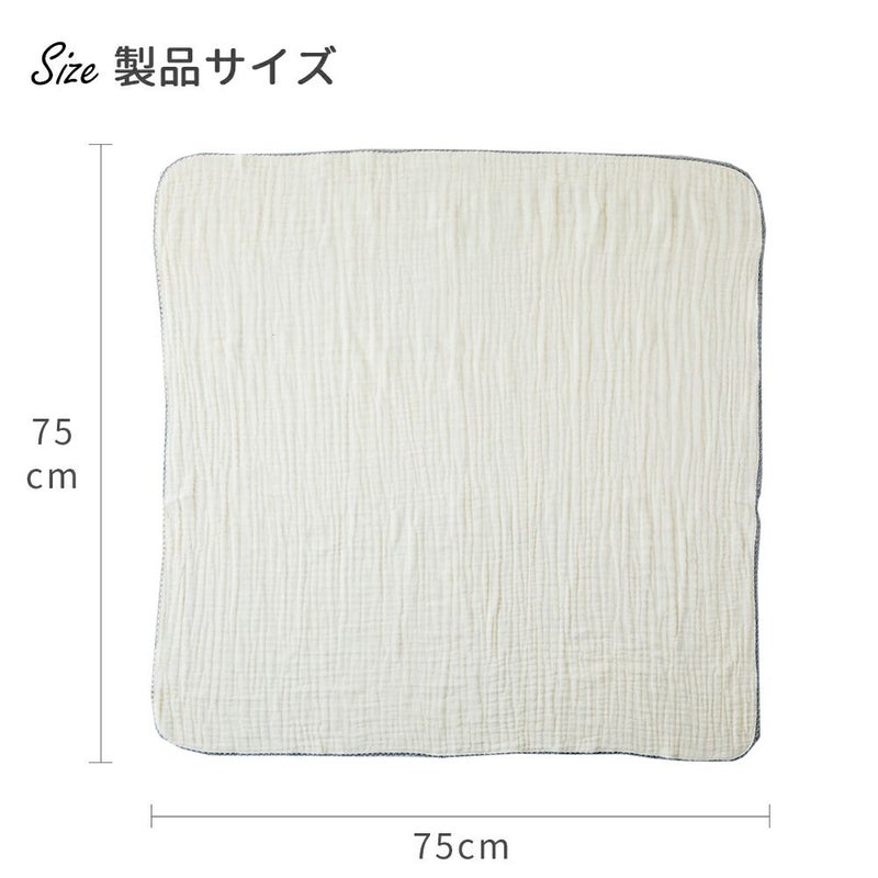 サイズは75×75cmで、おくるみに丁度良いサイズ感。おくるみだけでなく、湯上りタオルやブランケットにもおすすめです。掛ける・敷く・巻く・包むと色々な使い方ができる正方形は、マルチに活躍します!新生児期から幼児期まで⾧く使えます♪
