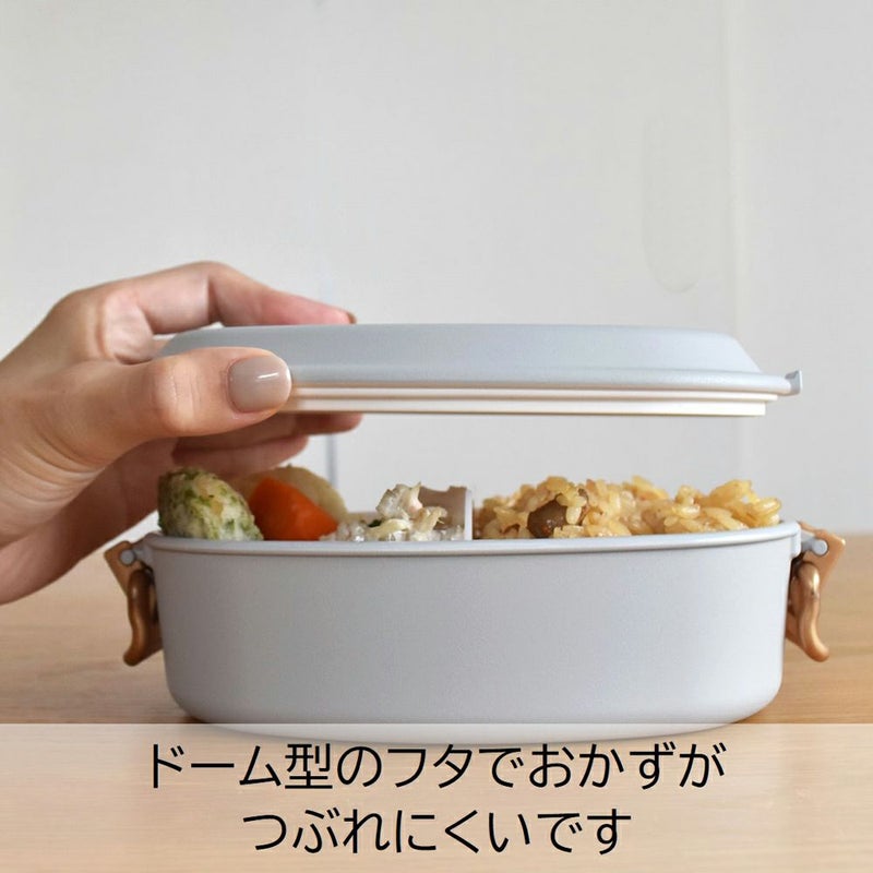 フタはドーム形状になっているので、盛り付けたおかずがつぶれません。