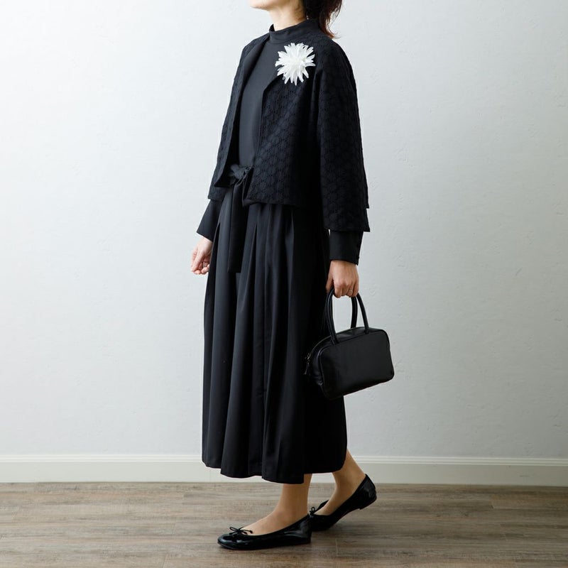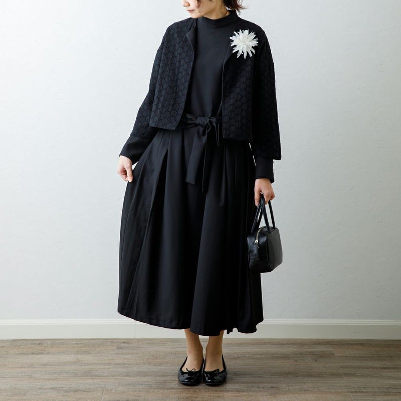 様々なシーンに着て行けるブラックは、重たくならないように、レーヨン混素材で仕立ててあります。