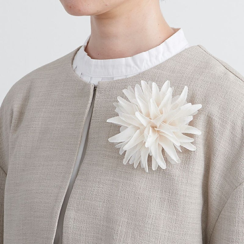 リネンを100%使用した菊型のコサージュに、シフォン素材をミックス!