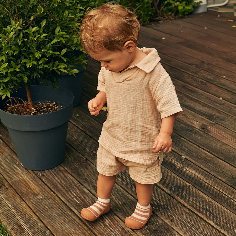 いよいよ歩き出そうとする赤ちゃんをやさしくサポートするベビーシューズ「Attipas」