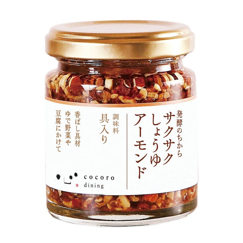 なたね油(国内製造)、ローストアーモンド、フリーズドライしょうゆ(大豆・小麦を含む)、フライドオニオン(小麦を含む)、砂糖、食塩、ごま油、フライドガーリック、酵母エキス、ごま、しょうゆ、魚醤パウダー、こしょう/加工でん粉、酸化防止剤(ビタミンE)