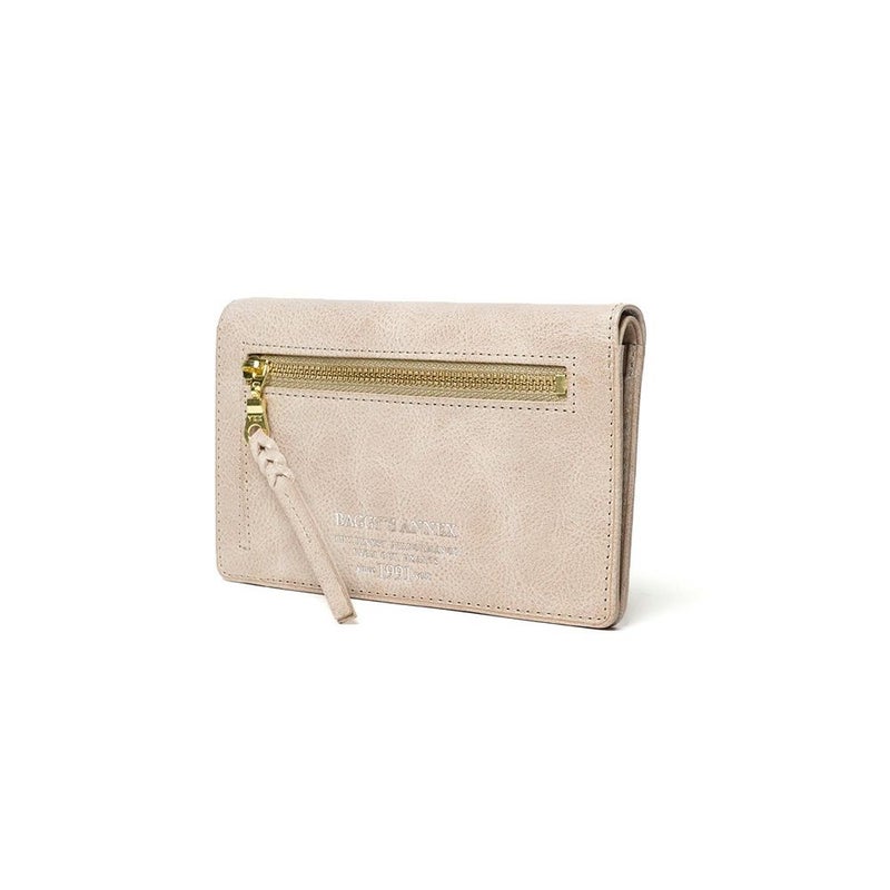 ソフトな革の表面に塗られたワックスが、まるで朝もやのような淡い色合いを表現しています。