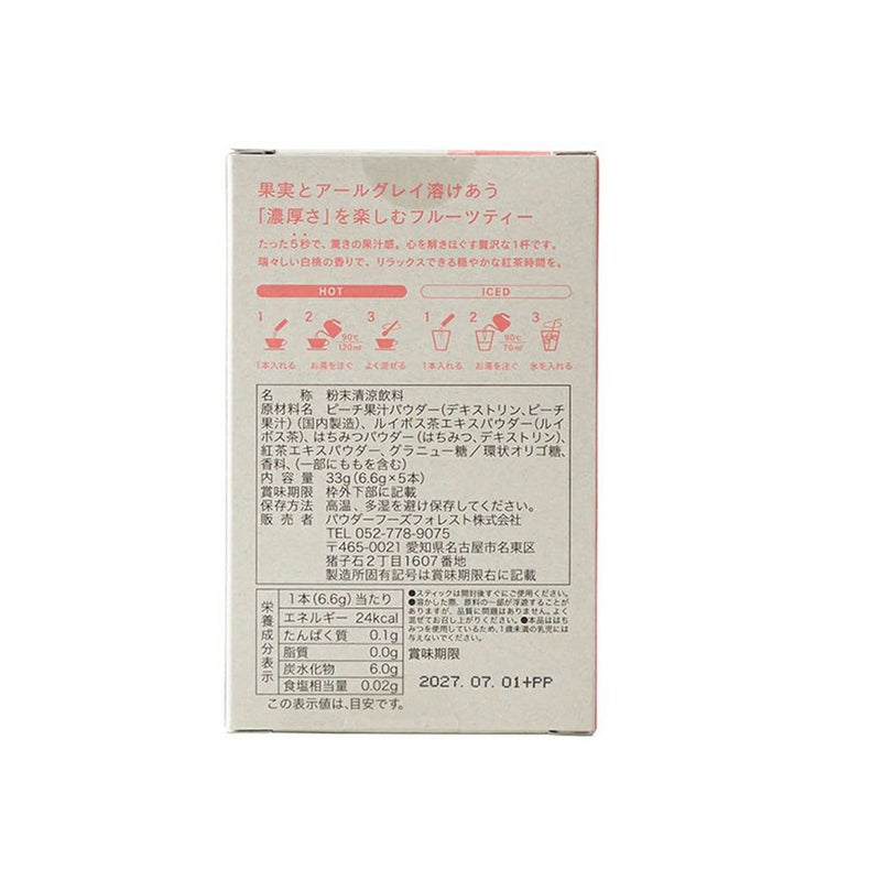 ピーチ果汁パウダー(デキストリン、ピーチ果汁)(国内製造)、ルイボス茶エキスパウダー(ルイボス茶)、はちみつパウダー(はちみつ、デキストリン)、紅茶エキスパウダー、グラニュー糖/環状オリゴ糖、香料、(一部にももを含む)