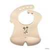 中に仕切りが付いた「ステイオープン」ポケット設計のシリコンビブ。