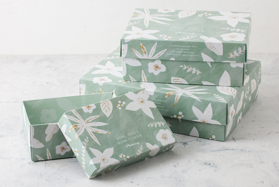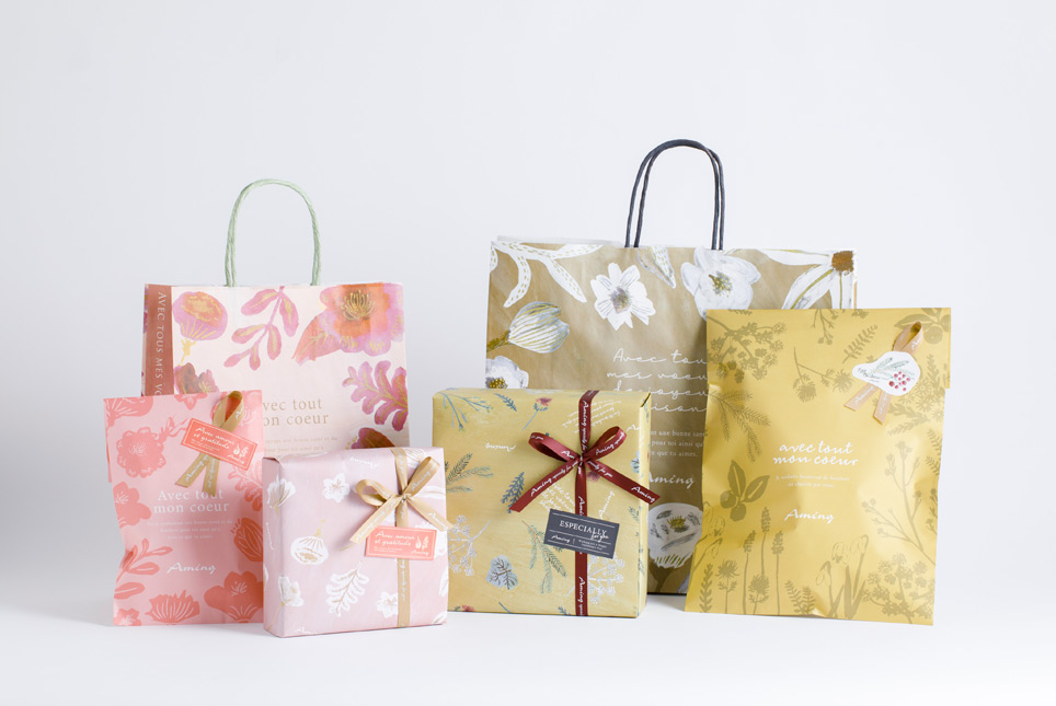 アミングオンラインショップ限定のサービスとして、包装紙・手提げ袋での【無料ラッピング】と【有料のボックスラッピング】をご用意しております。
