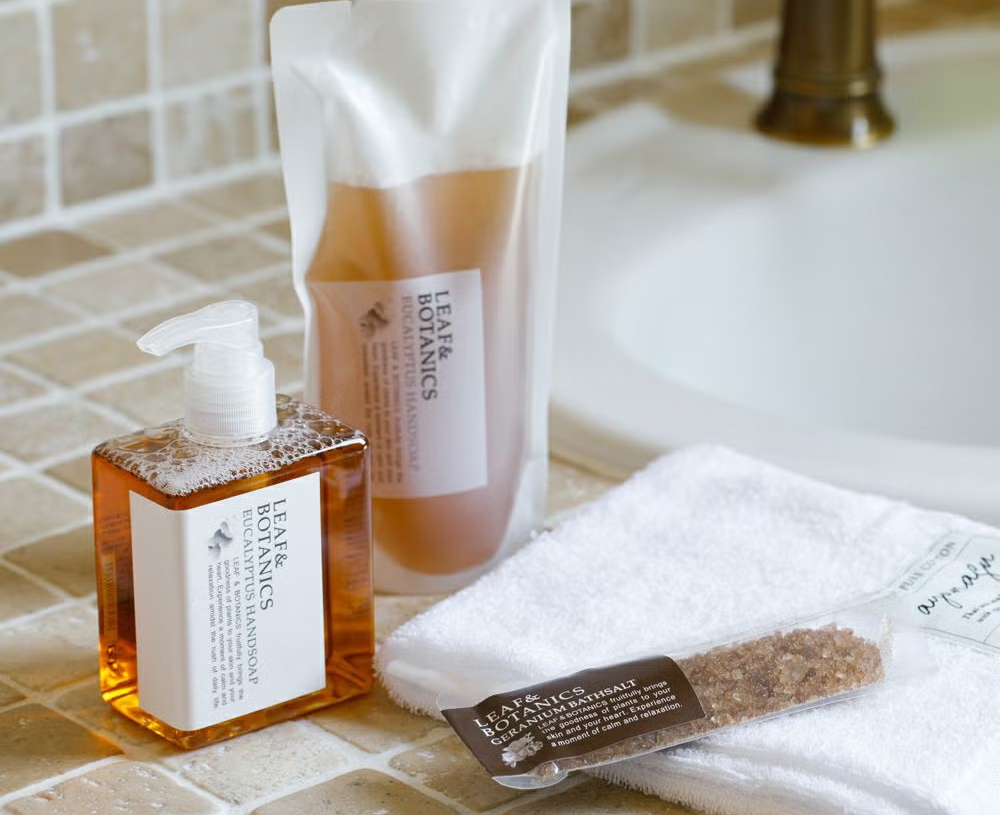おしゃれなハンドソープ&バスシュガー(バスソルト)とAmingオリジナルフェイスタオルの組み合わせ♪