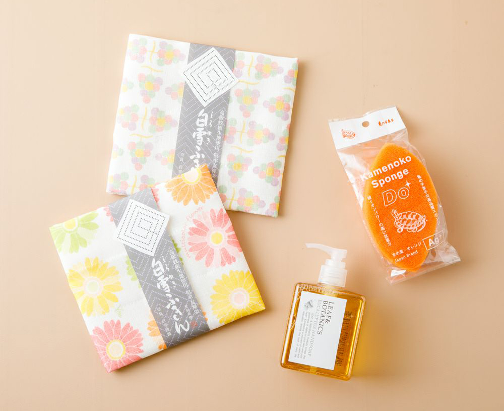ちょっとぜいたくで上質な調味料と、使いやすいふきんを組み合わせました。