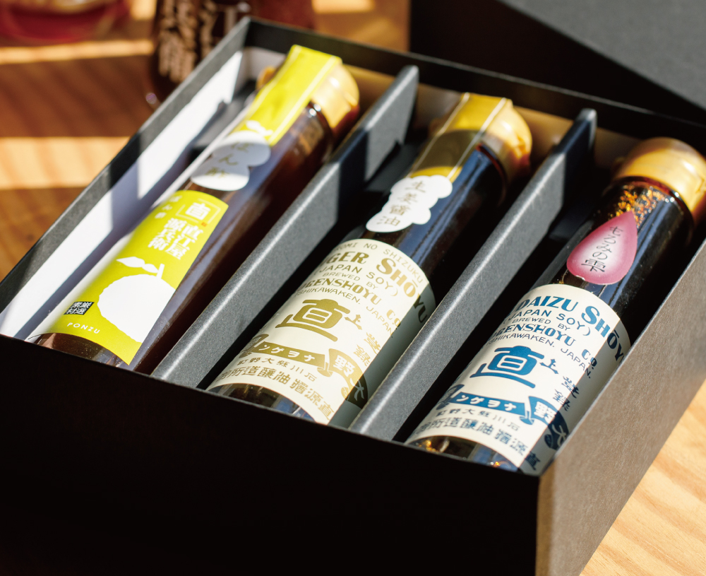 日々の食卓で大活躍の醤油2種類とぽん酢を組み合わせました。