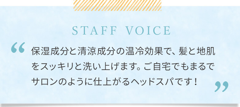 温感×爽快感でサロンのヘッドスパ感覚!しっとりとなめらかな仕上がり